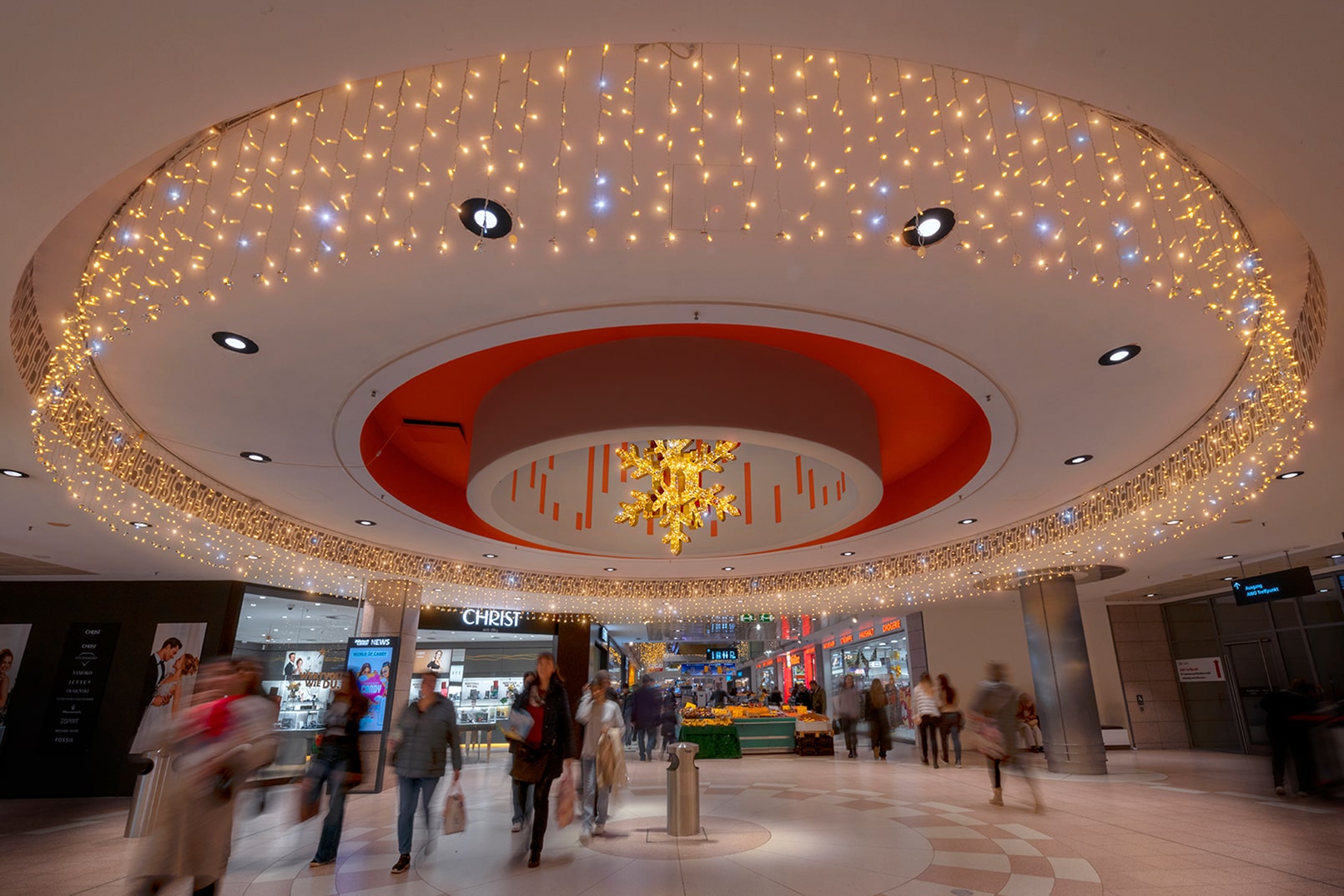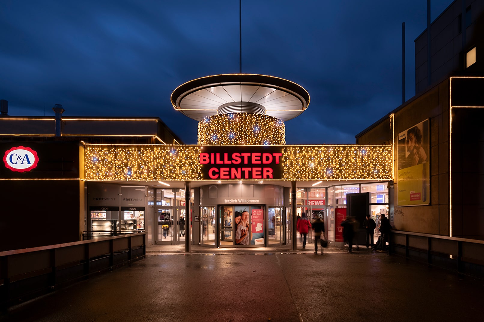 Das sympathische Multi-Kulti-Center in Mitten Hamburgs begeistert durch viel Glitzer und Glamour. Funkelnde Eiskristalle und ein zauberhafter Lichterhimmel bringen festliche Atmosphäre. Ein süßer XL-Eisbär lässt Kinderherzen höherschlagen. Die Dekoration ist bewusst familienfreundlich und robust gestaltet – hier ist Anfassen erwünscht!